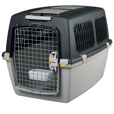 Trixie Gulliver 5 přepravní box s madlem a miskou. Zahrnuje sadu IATA pro cestování letadlem. Tato sada je schválena většinou leteckých společností. Box je vhodný pro střední psy do 25 kg.