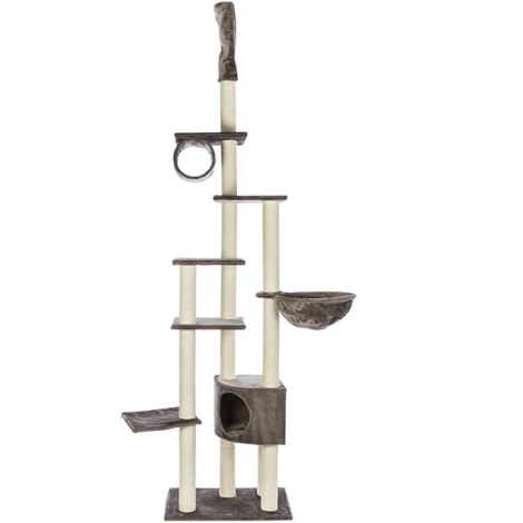 Škrabadlo Trixie Madrid s nastavitelnou výškou až do 270 cm je ideální volbou pro kočičky, které rády šplhají a odpočívají ve výškách. Díky možnosti připevnění ke stropu je škrabadlo stabilní a vhodné jak pro škrábání drápků, tak pro šplhání a odpočinek. Skládá se z několika sisalových sloupců, odpočívadel, tunelu i jeskyňky, která je vystlaná měkkým plyšem a zajistí dostatečný klid při odpočinku.