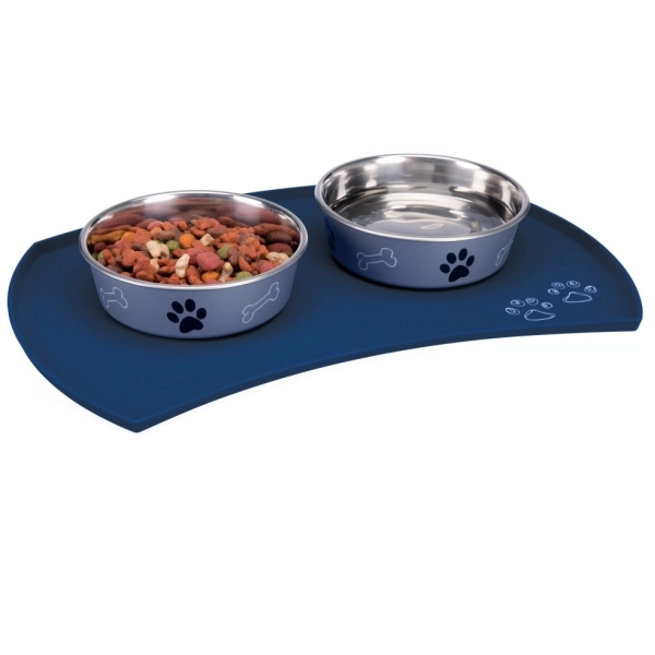 Trixie silikonové prostírání pod misky je skvělým pomocníkem při krmení nebo napájení psa. Zvýšení okraj prostírání zachytí zbytky krmiva nebo vycákanou vodu. Snadno se udržuje, je odolné a protiskluzové. Vhodné pro dvě misky o průměru do 22 cm. Prostírání můžete mýt v myčce.
