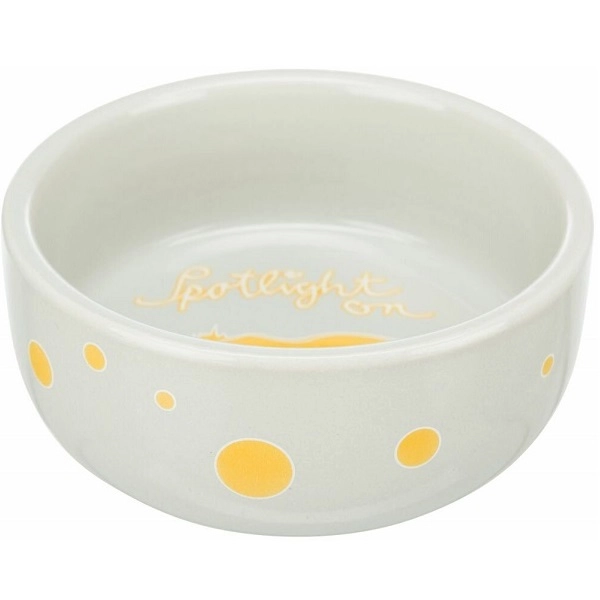Trixie Spotlight keramická miska pro morčata je vhodná na krmivo nebo na vodu. Mistička je v jemných barvách, které se hodí do každé klece. Keramika se snadno čistí a brání převržení misky. Navíc je mistička doplněna o roztomilé motivy morčátka. Možno mýt v myčce na nádobí.