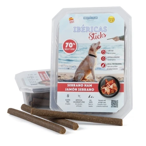 Poloměkké, snadno stravitelné a s vysokým obsahem voňavého masa. Takové jsou tyčinky Ibéricas. Byly vytvořeny pro potěšení vašeho pejska, který mlsá rád a zdravě. Tyčinky se dají lehce nalámat na libovolnou velikost, jsou vhodné i pro psy, kteří nemají kompletní chrup