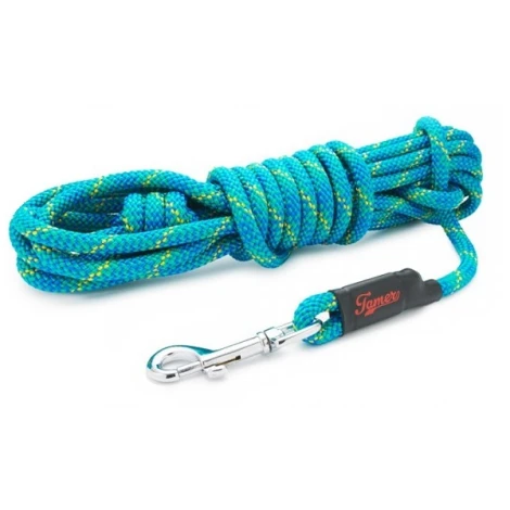 Stopovací vodítko Tamer využijete jak při nácviku přivolání, tak i při běžných pravidelných procházkách. Tato velikost je vhodná pro střední až velká plemena psů. Pro výrobu vodítka je použit materiál a technologie využívané v horolezectví, každý lisovaný spoj a uzel je tedy maximálně odolný k mechanickým poškozením. Zredukován na minimum je počet prvků, které se mohou mechanicky poškodit. Stopovací vodítko je zakončeno uzlem bez úchytu.