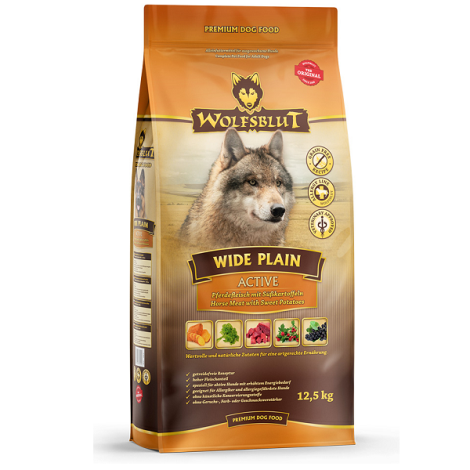 Wolfsblut Wide Plain Active Adult - kompletní krmivo pro psy v zátěži. Přináší psům chuť divočiny! Kombinuje šťavnaté maso a výživné superpotraviny – vše bez obilovin, inspirováno přirozenou stravou vlků. Každá granule je plná síly a vitality, aby váš pes prospíval stejně jako jeho divocí předci.